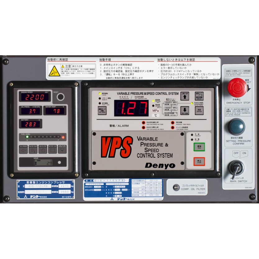 吐出圧力は1.27~0.70MPa、吐出空気量は11.0~13.0㎥/minを自在に設定できます