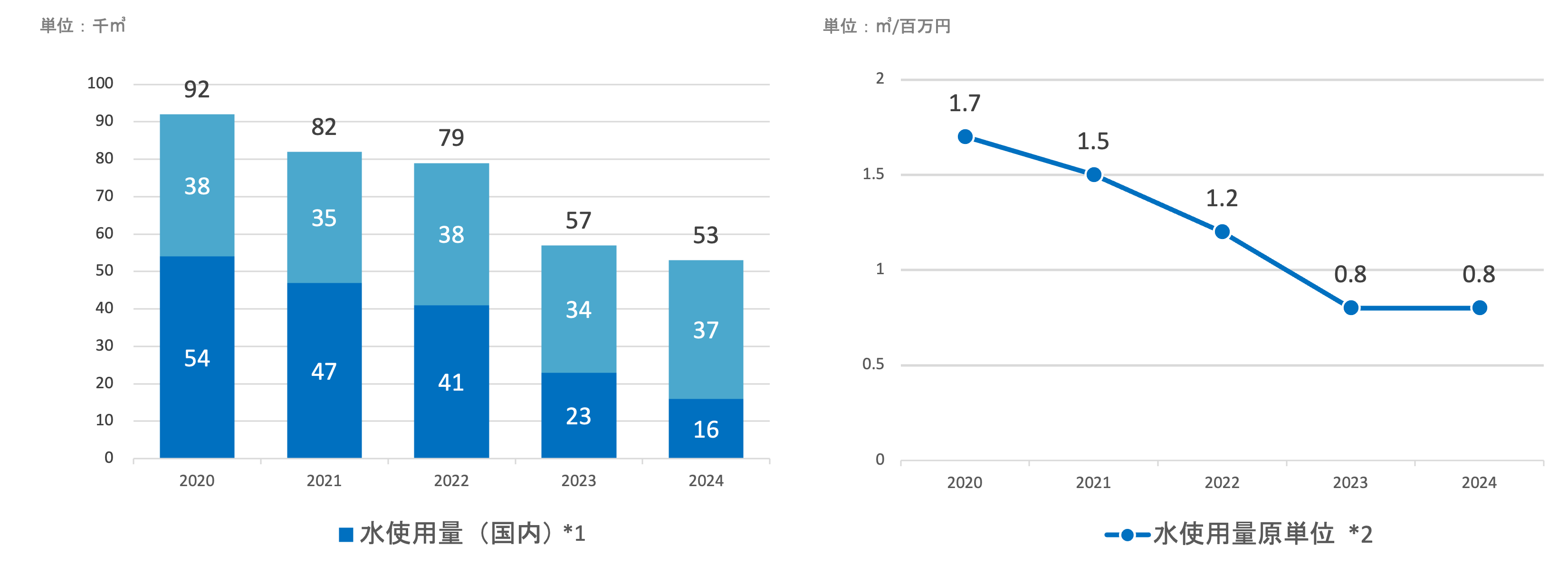 *2 原単位は連結売上高当たりの水使用量です。