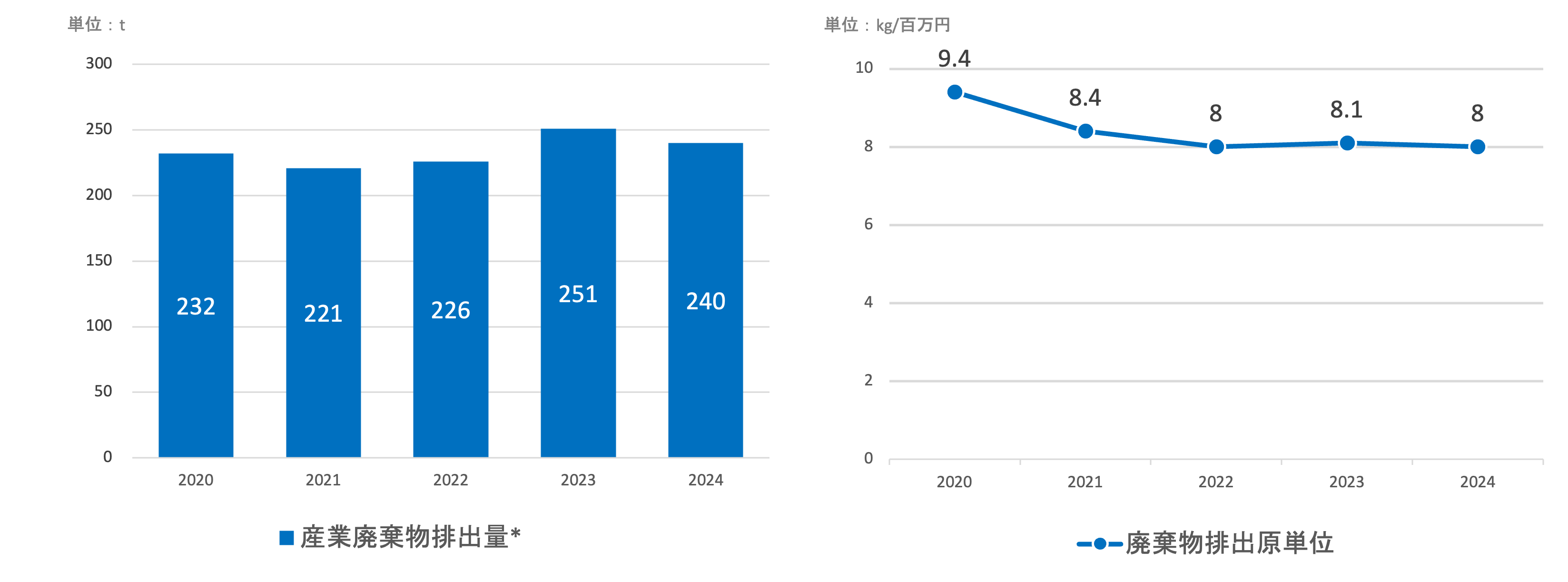 関係諸法令に従い適切に管理及び処理を行っております。 2024年度の生産高あたりの産業廃棄物量は8.0kg/百万円で、前年度比約0.1kg/百万円の削減となりました。これは主に、塗装工程の改善により、粉体塗料の廃棄量が削減できたことによります。今後、安定的に一定量以上の廃棄物を削減できるよう、引き続き取り組んでまいります。