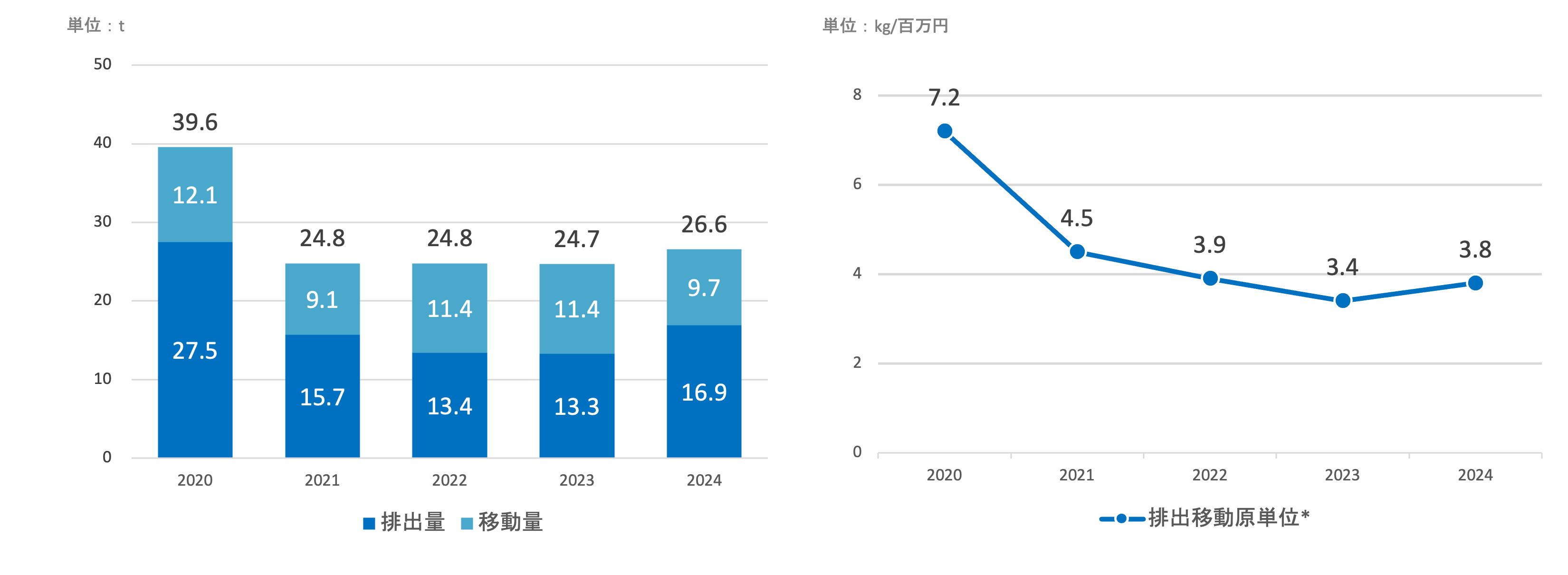 *原単位は連結売上高当たりのPRTR法対象物質排出量・移動量です。