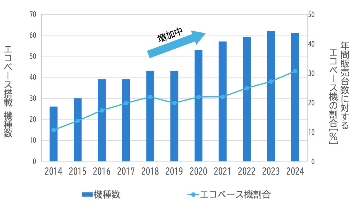 そこで、本体下部にエコベースという空間を設け、万一オイル漏れが発生した時でも、エコベースに溜めることにより、外部流出を極力防止することで、環境への負荷が減り“生物多様性、生態系の保護”につながります。
